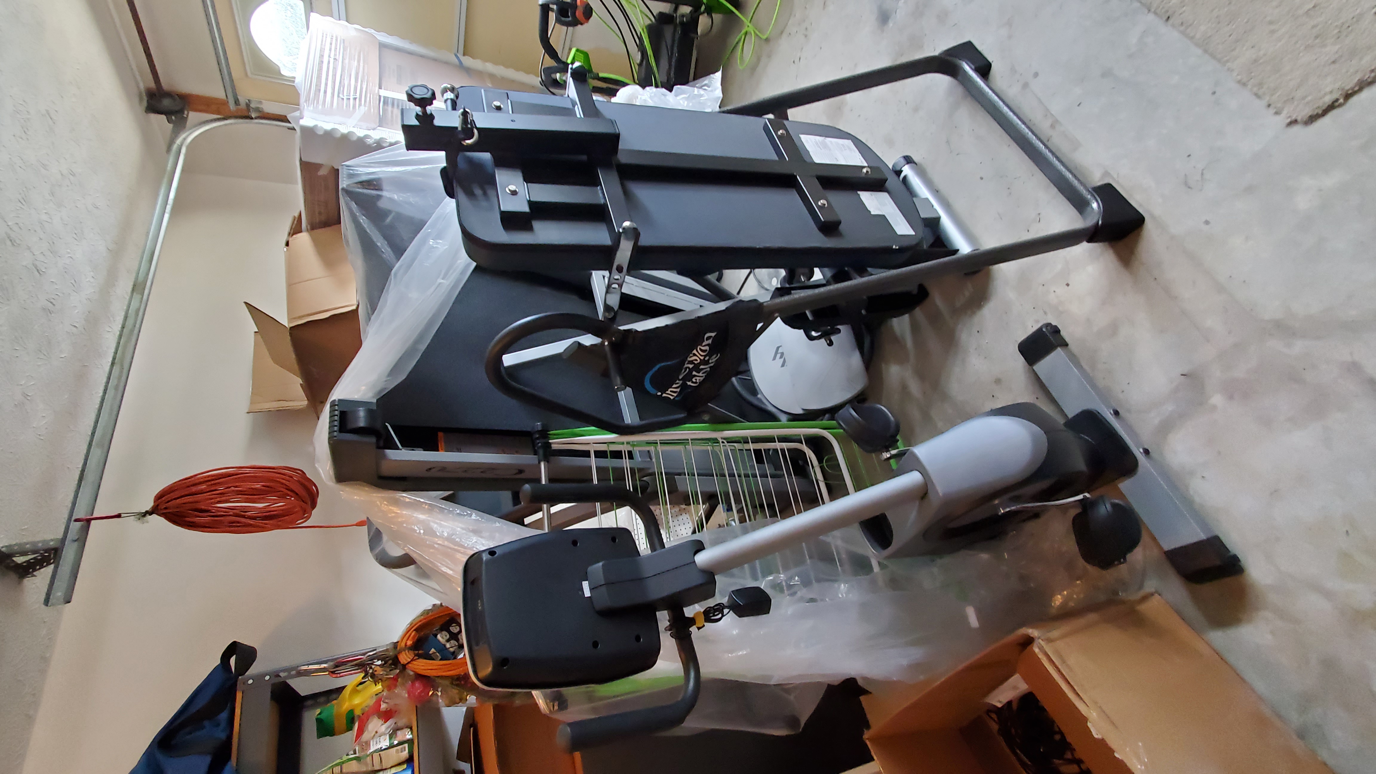 20201021_154116 1 x Treadmill, 1 x Bicycle, 1 x Inversion Table (exercise equipment).
