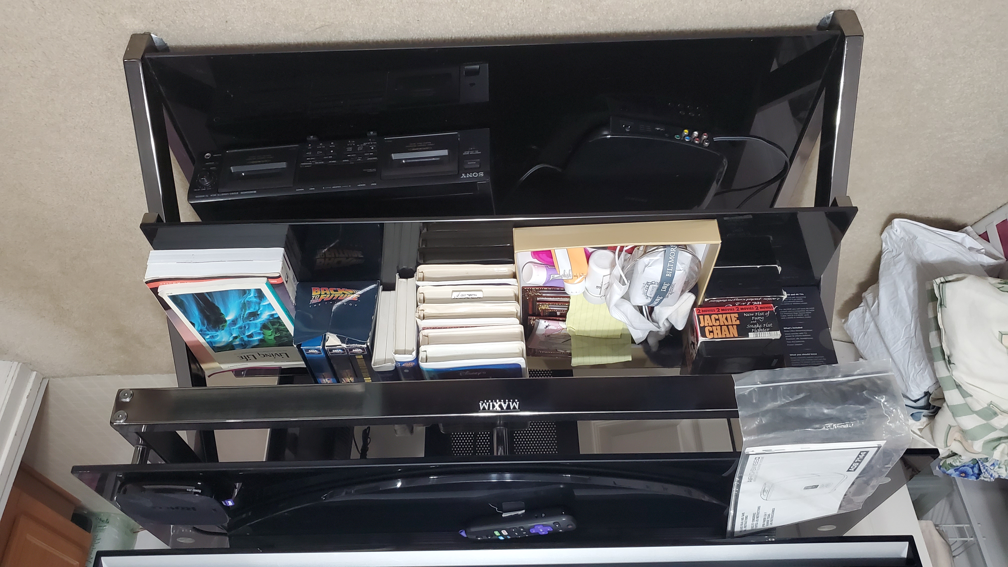 20201021_154319 1 x Entertainment Center/Stand. Note: Audio equipment will be boxed separately, TV may not be shipped.