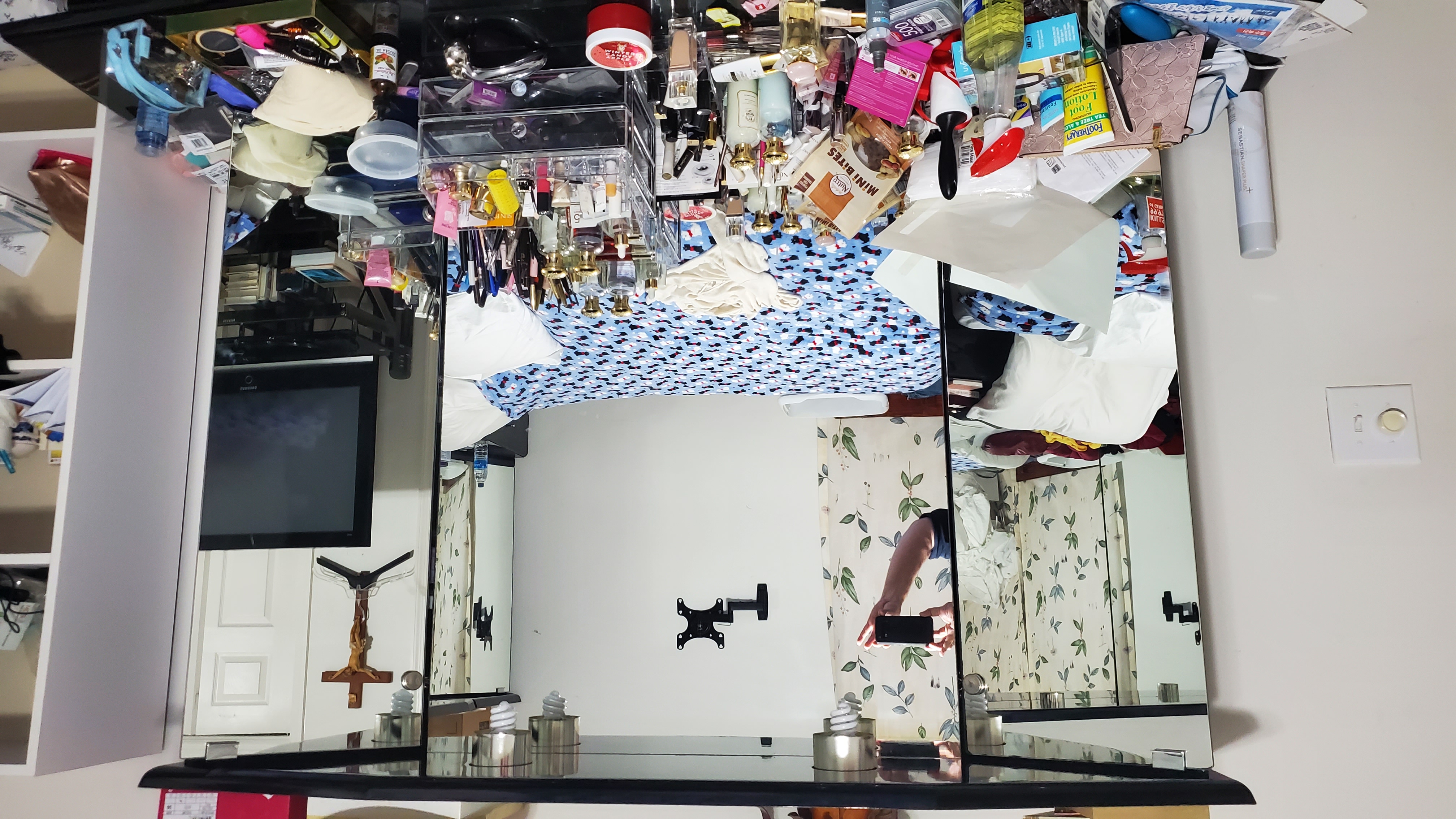 20201021_154307 2 x Foundation Frames (1/2 King each), 2 x End Cabinets, 1 x Headboard. Note: mattress, mirrors, & top headboards will not be shipped.